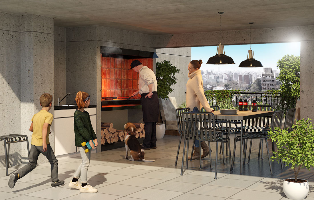 En el piso 15 encontramos un cómodo solarium con piscina, un quincho semicubierto con asador y excelentes vistas en altura hacia el frente y contrafrente.